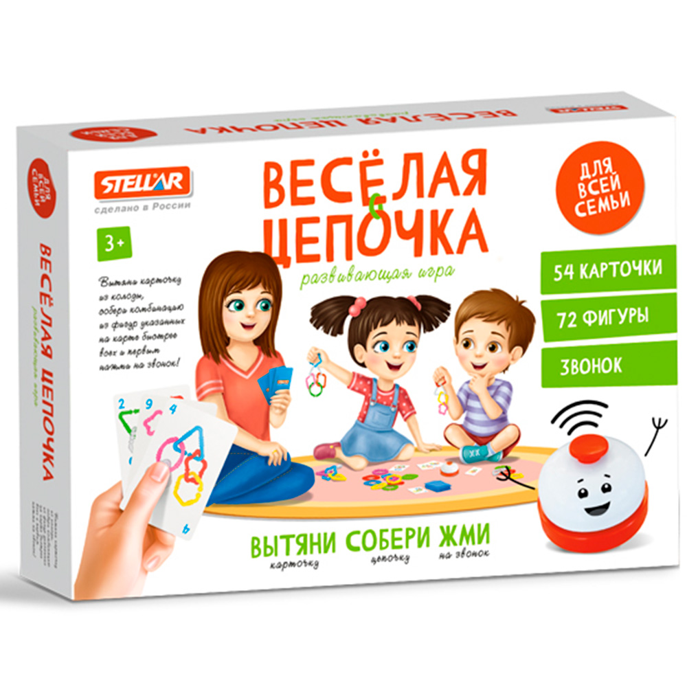 Комплектация: 54 карточки, 72 фигуры, звонок