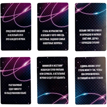 Суть игры: выполнять задания, указанные на карточке, которую игроку предстоит вытянуть из колоды.