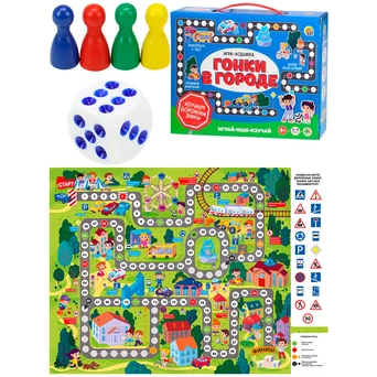 - Комплектация: игровое поле — 1 шт., фишки — 4 шт., кубик — 1 шт., правила игры
