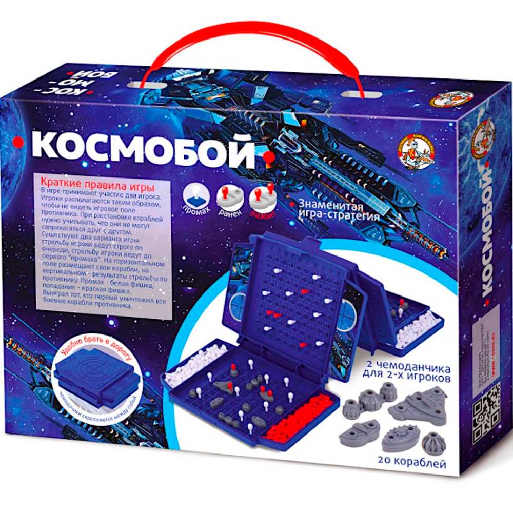 Комплектация: игровое поле - 2 шт., корабли - 10 шт., белые фишки – 160 шт., красные фишки – 40 шт., декоративные наклейки - 2 шт.Материал: картон, пластик