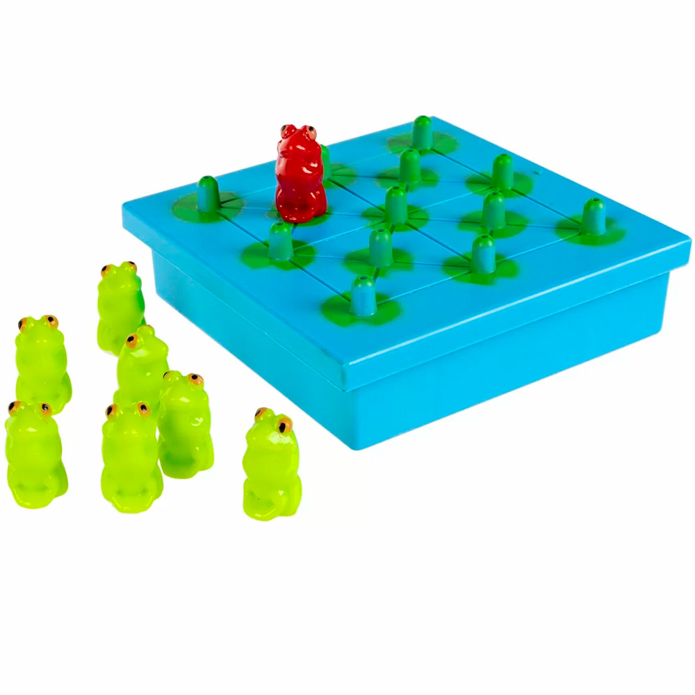 Суть игры: 40 заданий разной сложности. Цель – перепрыгивать и удалять зеленых лягушек до тех пор, пока на игровом поле не останется одна главная лягушка алого цвета.