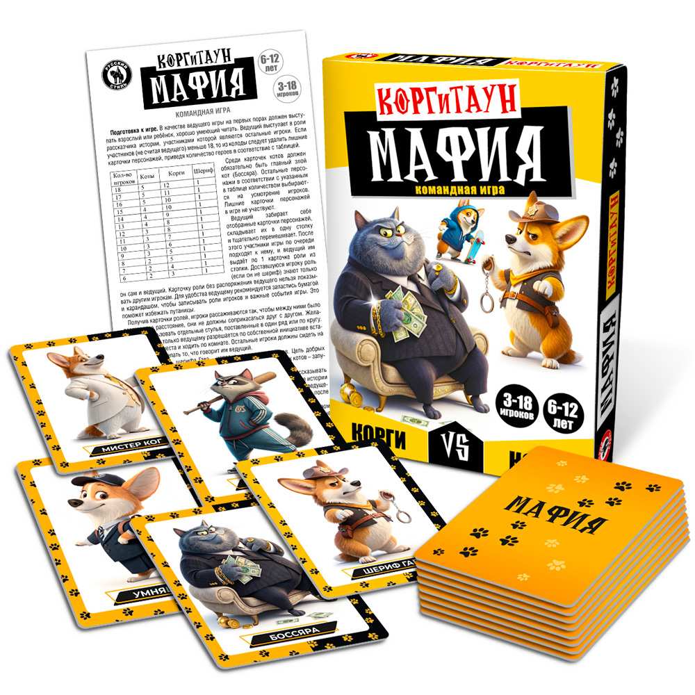 Игра представлена красочно исполненными карточками с изображением 2-х противоборствующих команд: мирных жителей и мафии.