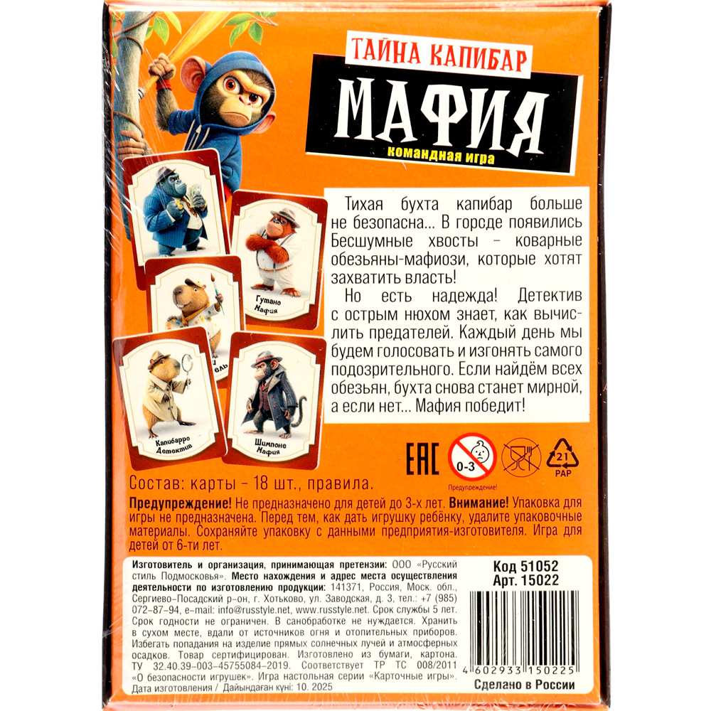 Настольная игра «Мафия» разнообразит досуг компании и поможет увлекательно провести время, разгадывая детективные сюжеты и вычисляя мафию.