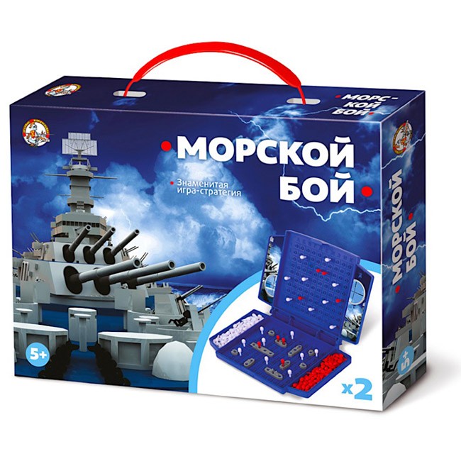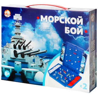 Комплектация: игровое поле - 2 шт. (16*12*3 см), корабли - 10 шт. в каждом наборе, белые фишки – 160 шт., красные фишки – 40 шт., декоративные наклейки - 2 шт.Материал: картон, пластик