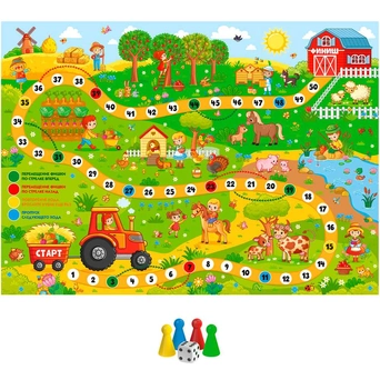 Увлекательная настольная игра-ходилка «На ферме» от бренда «Десятое королевство» подарит хорошее настроение и веселое времяпрепровождение!