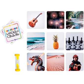 - Комплектация: карточки — 96 шт., песочные часы — 1 шт., правила — 1 шт.