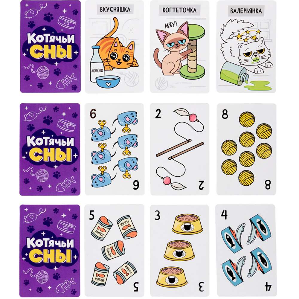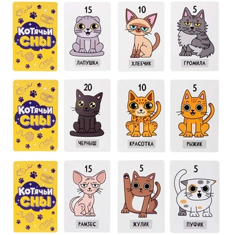 Цель игры - собрать 5 котиков или накопить 50 баллов (для 2-3 участников); или собрать 4 котиков или накопить 40 баллов.