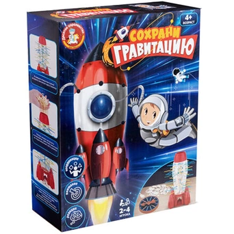 Комплектация: ракета из 2 частей - 1 шт., носовая часть - 1 шт., подставка (двигатель) - 1 шт., рулетка со стрелкой - 1 шт., человечки - 30 шт., палочки - 30 шт.