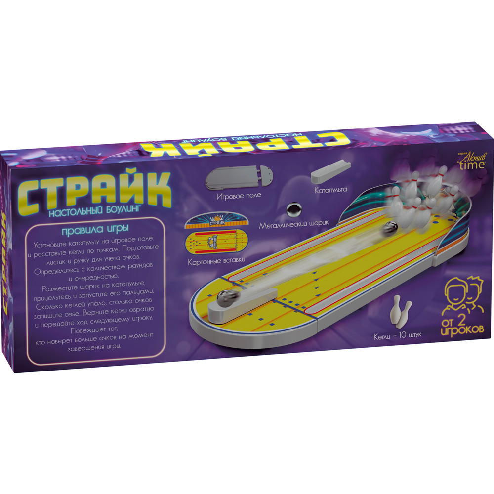 Комплектация: игровое поле - 1 шт., кегля - 10 шт., катапульта - 1 шт., шарик - 1 шт.