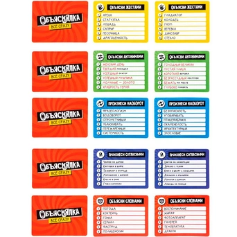 Суть игры: нельзя называть загаданное слово, но можно объяснить, используя только жесты, антонимы, только согласные или перевернутые слова.