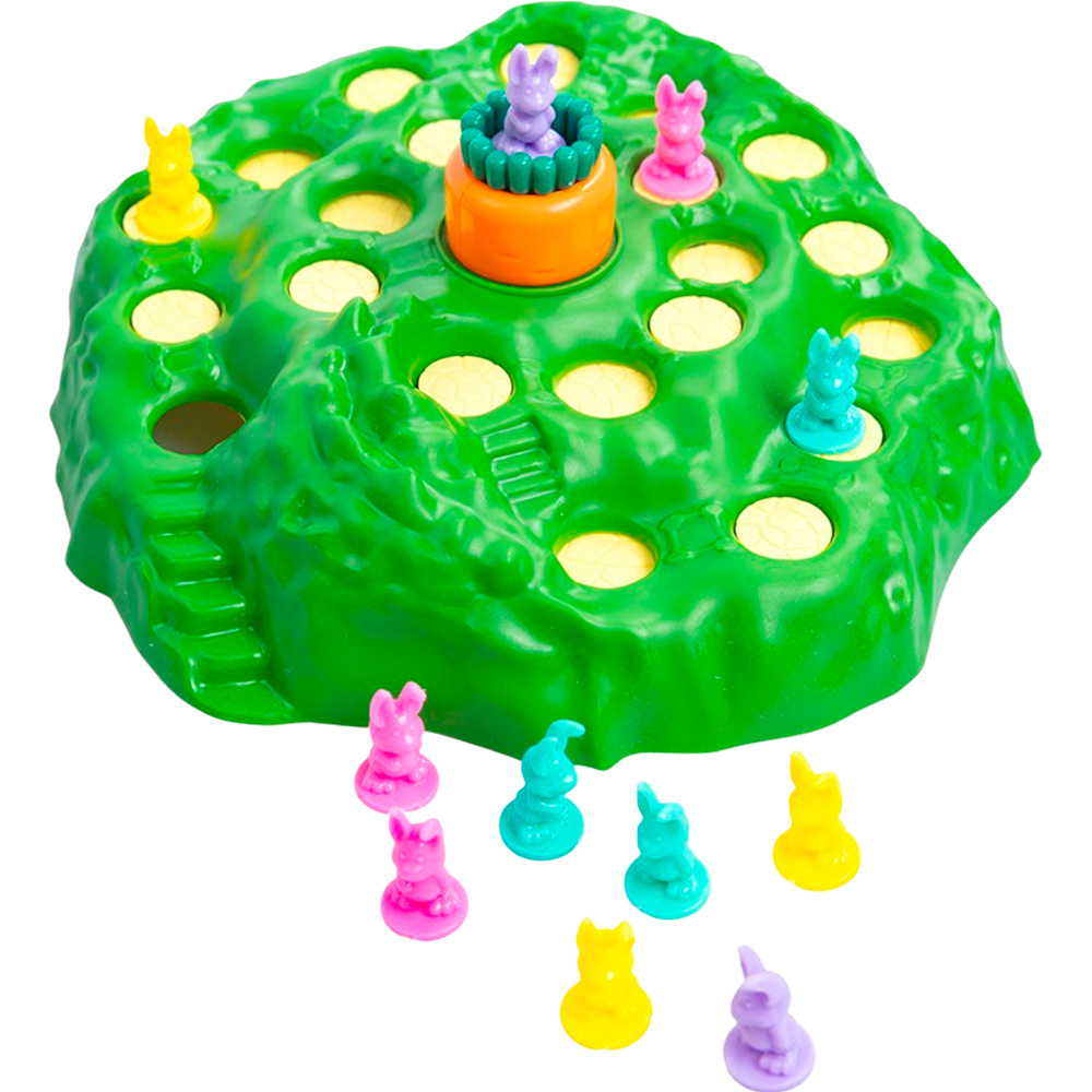 Суть игры: первым добраться до морковки в центре поля. Участники карточки из колоды. Если попался кролик, игрок делает столько шагов, сколько кружочков нарисовано на карточке. Если изображена морковка, игрок прокручивает морковку в центре грядки. В этот момент срабатывают ловушки.