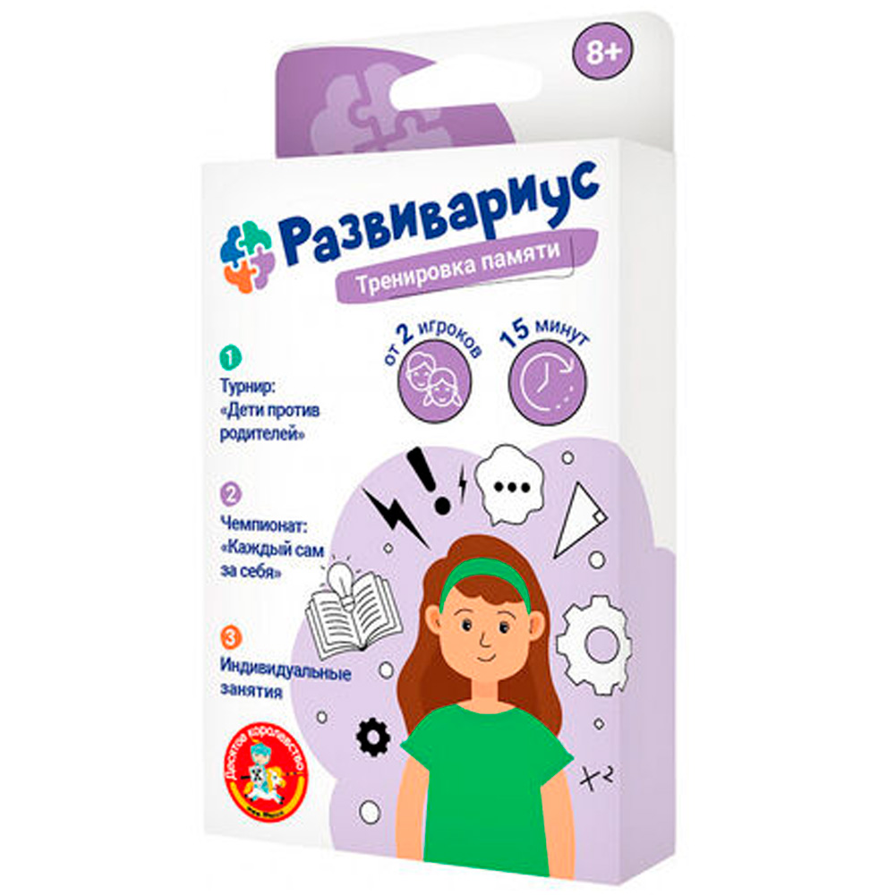 Настольная карточная игра «Развивариус. Тренировка памяти» обязательно понравится детям и увлечет надолго. Играть в данную игру можно вдвоем с ребенком, а также устраивать увлекательные турниры.