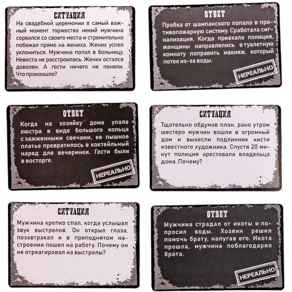 - Увлекательный сюжет: игрокам нужно определить, правдивы ли ответы на ситуации, изображённые на карточках.