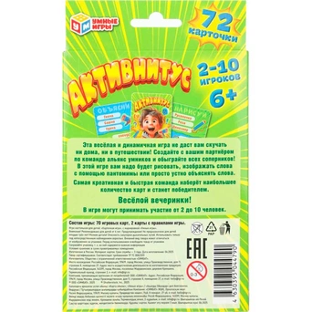 Карточная игра «Активнитус» ТМ «Умные игры» — отличное развлечение для всей семьи.