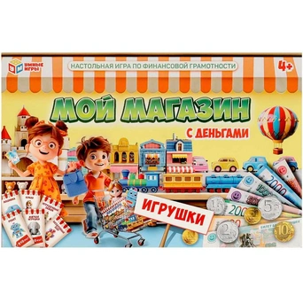 Суть игры: ребёнок сможет примерить роль покупателя или продавца. Игра обучает финансовой грамотности, развивает речь ребёнка и его коммуникативные навыки, учит объединять предметы по группам.