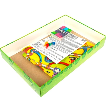 Комплектация: 2 игровых поля, 42 карточки, игральный кубик, 4 разноцветные фишки