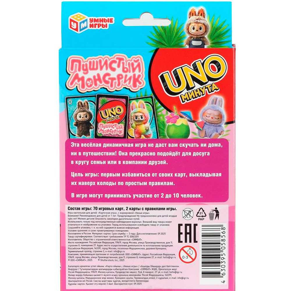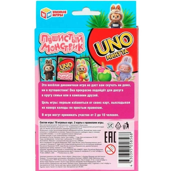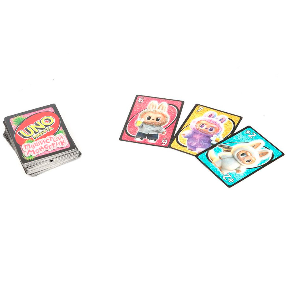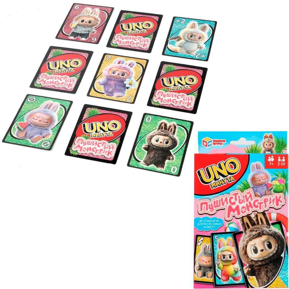 Цель игры: выкладывать карты в стопку, если они совпадают цифрами или по цвету или забавной картинке с предыдущей выложенной картой. Кто быстрее избавится от всех своих карт, тот и выиграл.