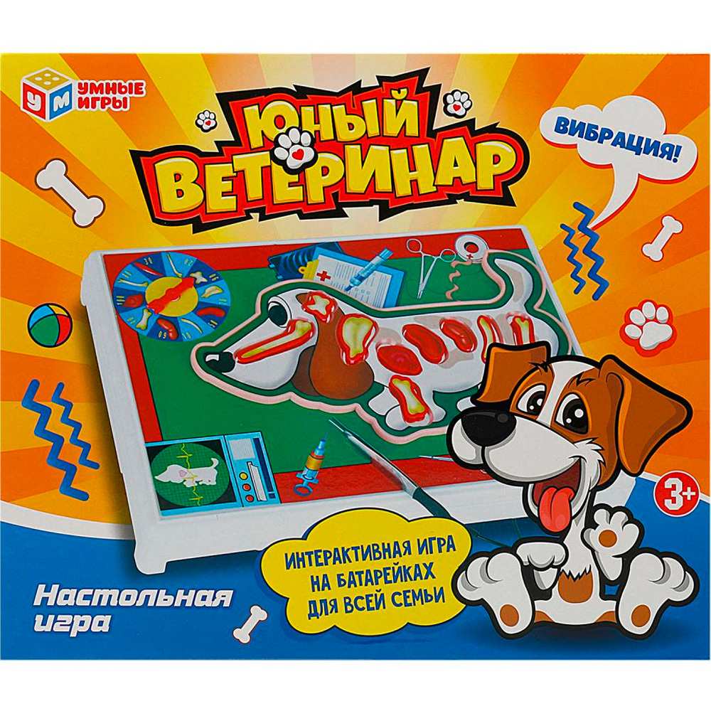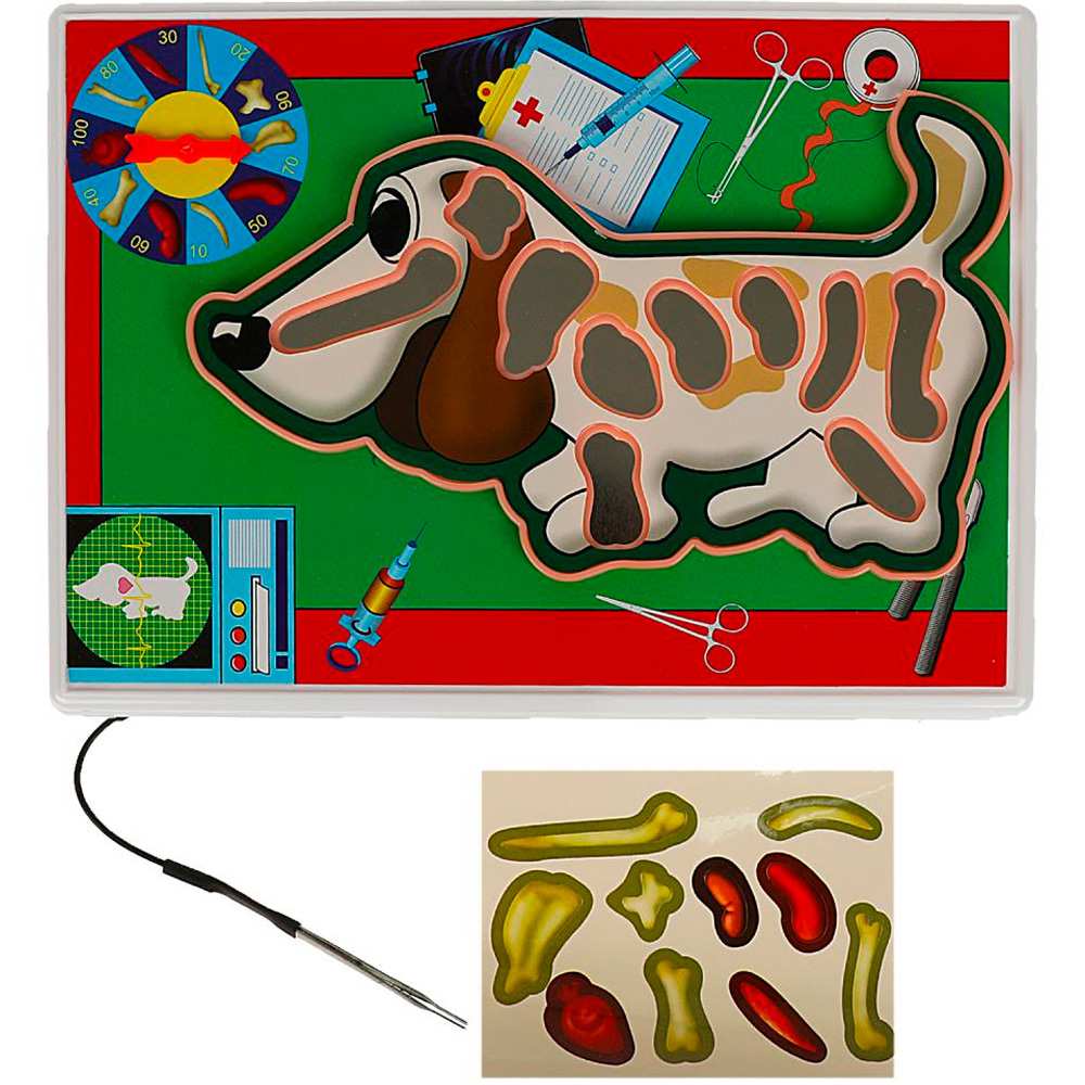 С помощью такой игры ребенок вживется в роль ветеринара и познакомится с анатомией собаки. Игра работает на батарейках. Правила игры в комплекте.