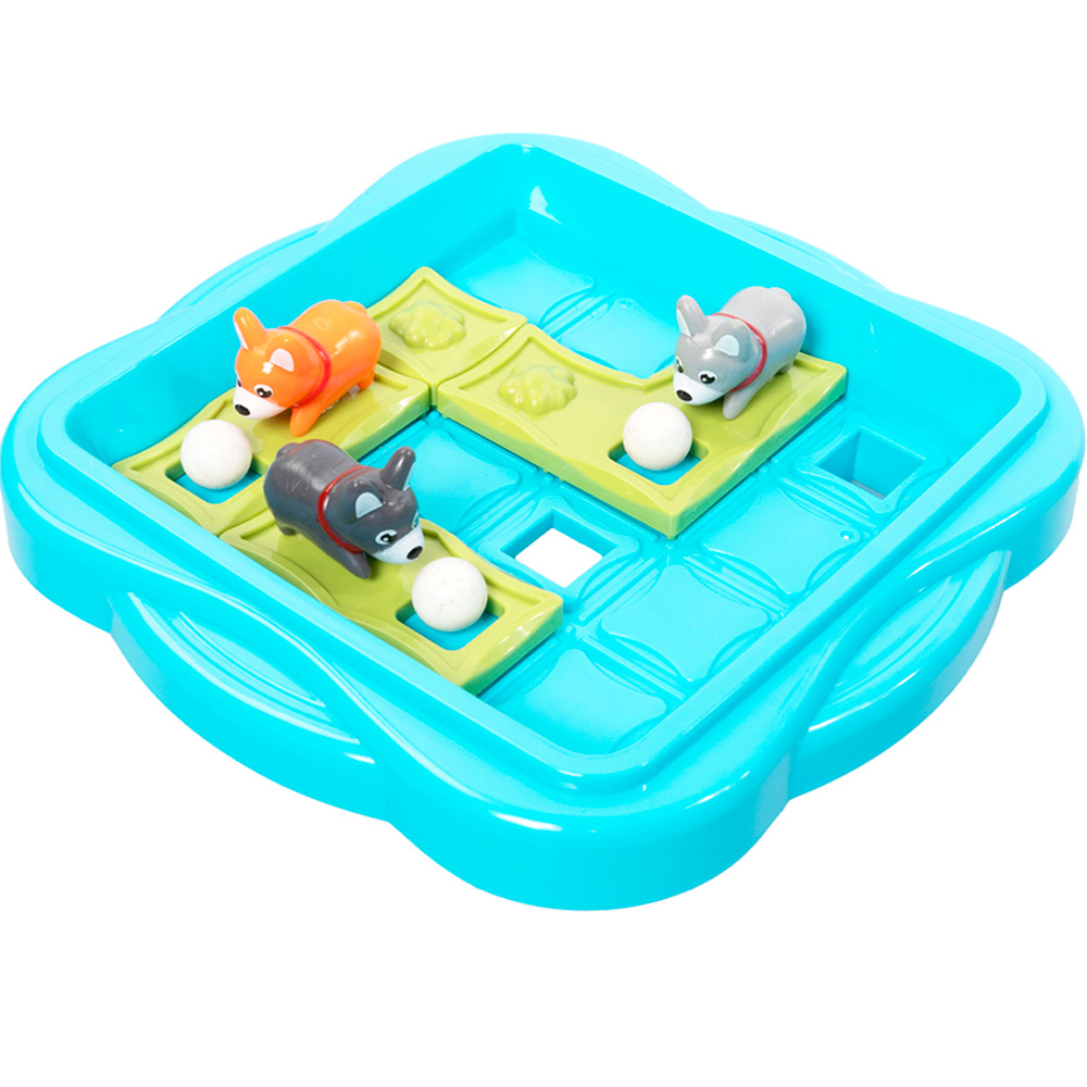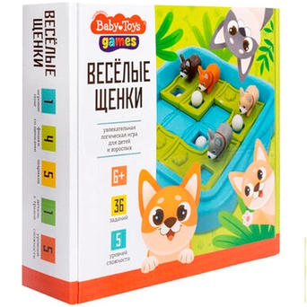 Цель игры - перемещать игровые фишки со щенками по игровому полю так, чтобы шарики попали в отверстия.