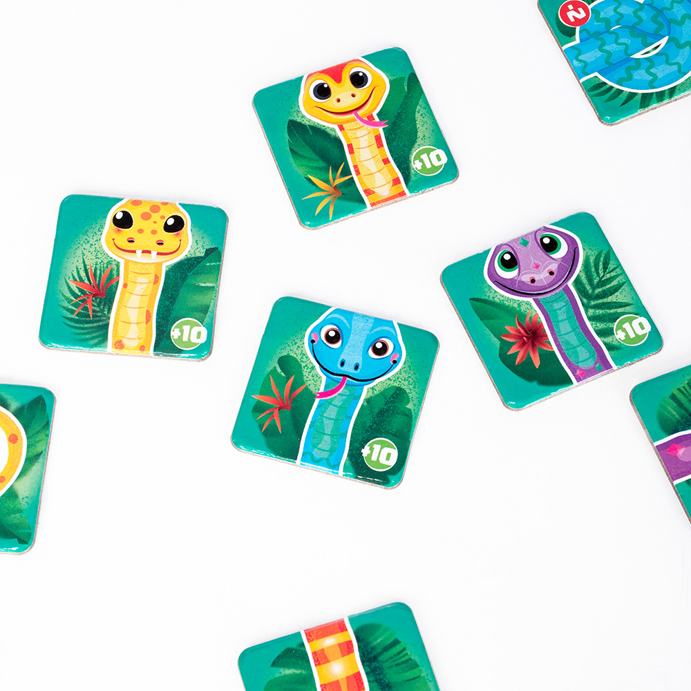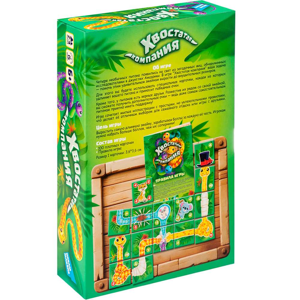 Суть игры: участники помогают загадочным питонам из джунглей Амазонки вырасти до рекордных размеров! Используя карточки, игроки удлиняют своих змеек.