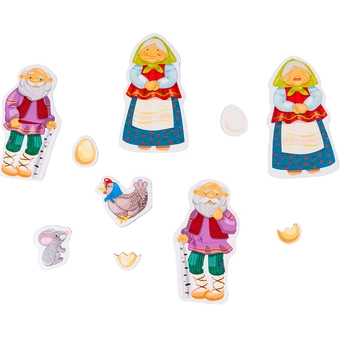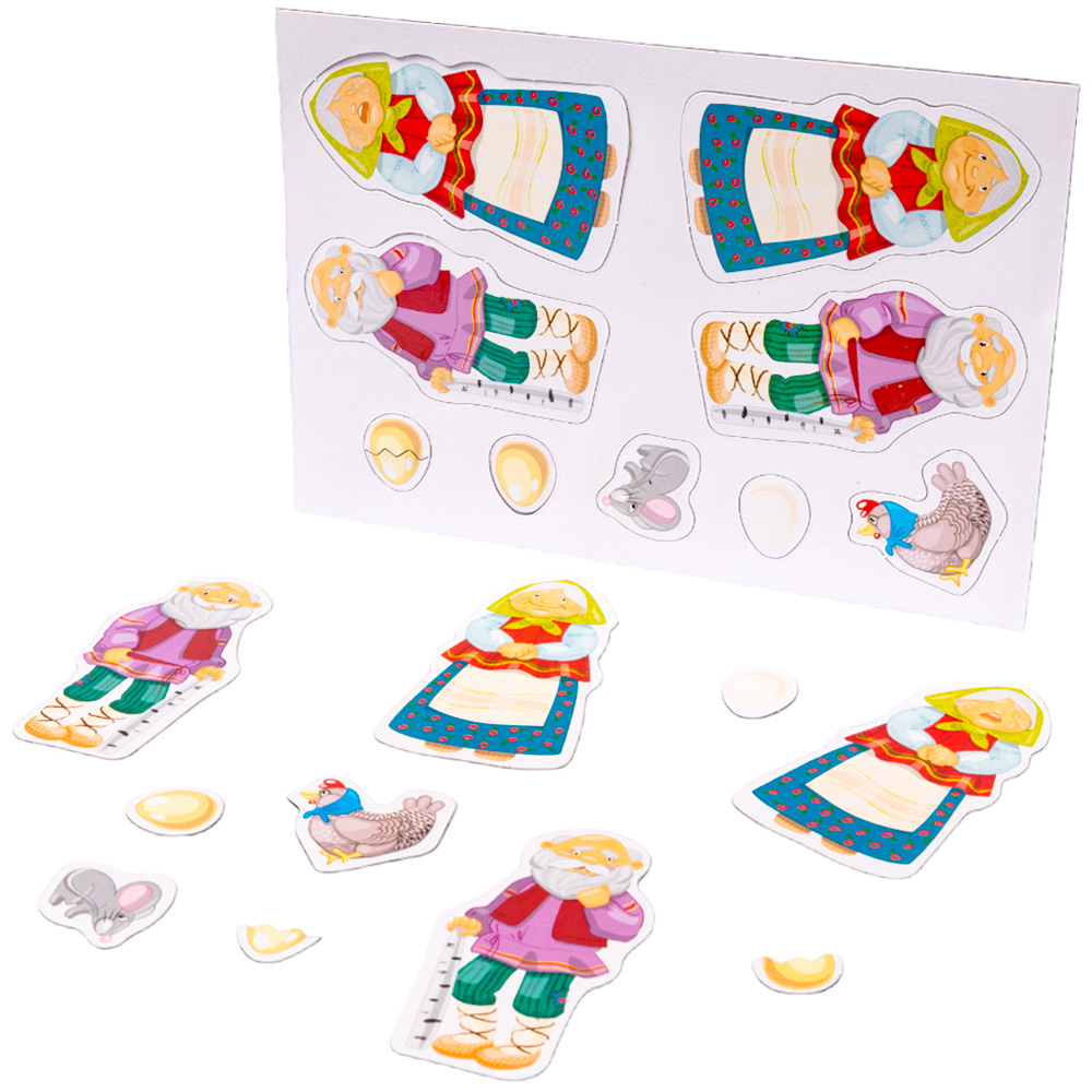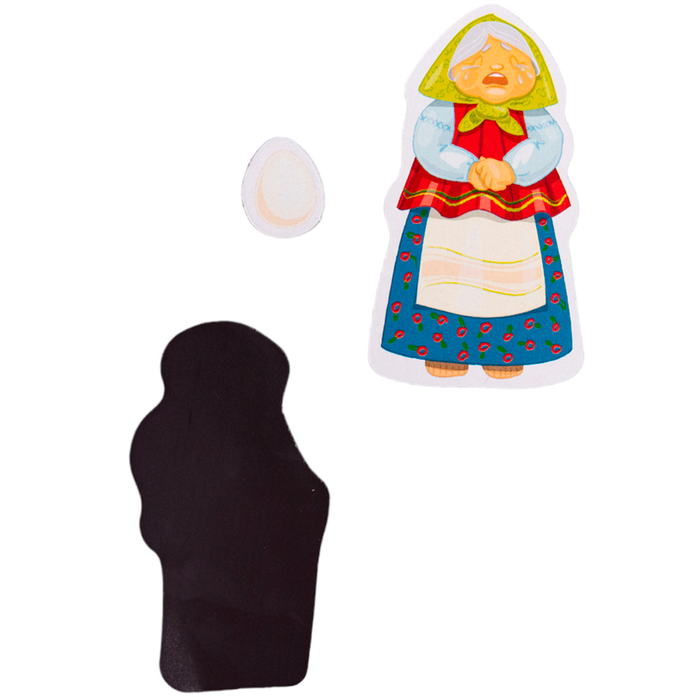 Наборы серии "Магнпитные истории" позволят малышу увлекательно провести время: разыграть сказку, познакомиться с животными, растениями, видами транспорта, что расширит его кругозор и знания об окружающем мире и обогатит словарный запас. В этой игре несколько мягких магнитных элементов - герои сказки "Курочка Ряба". Для игры можно использовать магнитную доску или поверхность холодильника. Игра можно по-разному: рассказывать сказку и располагать на доске героев, малыш может сам рассказать сказку, смотря на доску с героями. Все элементы выполнены из прочных и качественных материалов.