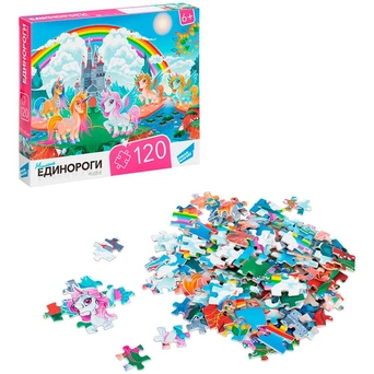 Пазл «Единороги» понравится малышам дошкольного возраста. В наборе 120 элементов.