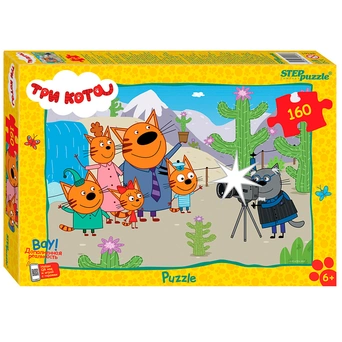 Красочный пазл «Три кота» по мотивам одноименного мультфильма привлечёт внимание малышей. Малыши с большим интересом соберут веселую картинку с любимыми персонажами.