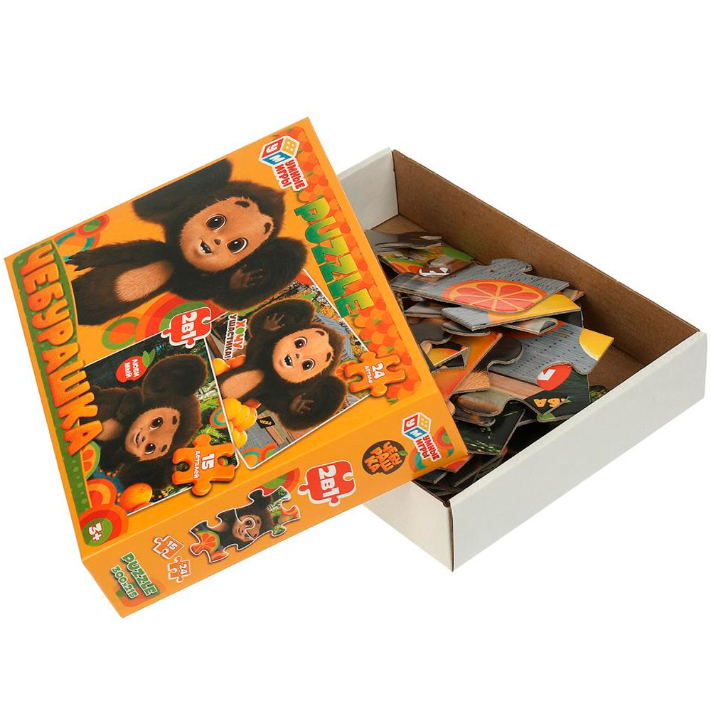 Любителям сборных картин обязательно понравится этот красочный пазл: 2 картинки, состоящие из 15 и 24 элементов.