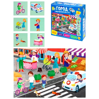 Развивающие двухсторонние пазлы 6+1 «Город» предназначены для детей дошкольного возраста.