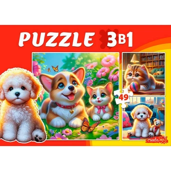 Пазл 3 в 1 Домашние питомцы 3 картинки по 49 эл. П-3460