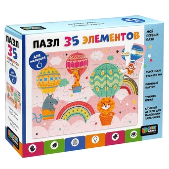 Очень красивый и большой пазл «На воздушном шаре» новой линейки Baby games серии «Мой первый пазл» однозначно придется по душе ваше крохе.