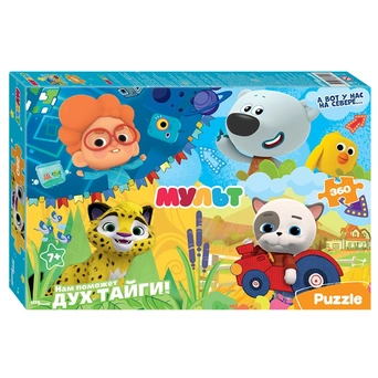 Пазл "Ми-ми-мишки и др. Мульт" - увлекательное занятие для девчонок и мальчишек. Из 360 деталей ребята смогут собрать яркое красочное изображение с любимыми героями популярных мультфильмов - Тучкой, Лео и другими. Готовая картинка отличается яркостью и насыщенными красками, детали для сборки выполнены из плотного картона качественной вырубки.
