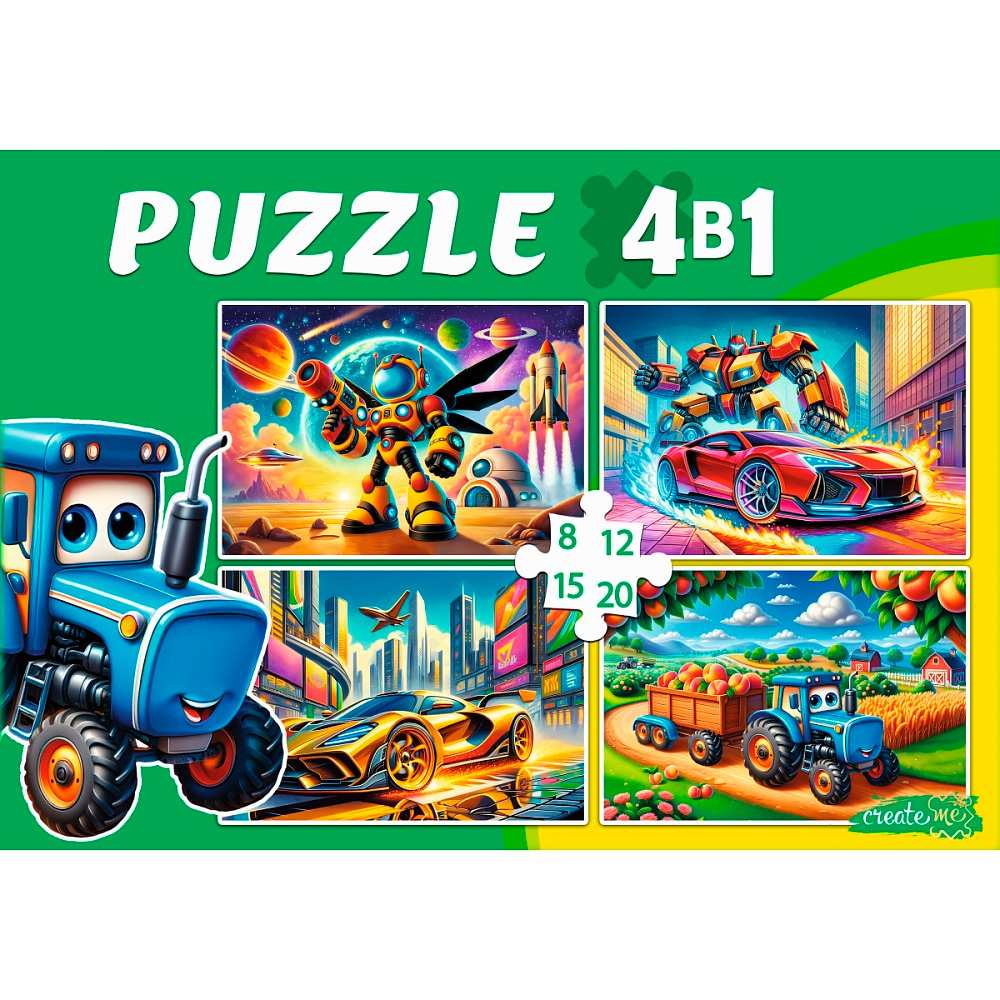 Пазл 4 в 1 Машинки и роботы 8, 12, 15, 20 эл. П-3409