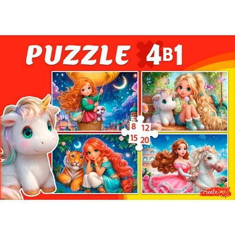 Пазл 4 в 1 Принцессы и милые животные 8, 12, 15, 20 эл. П-3412