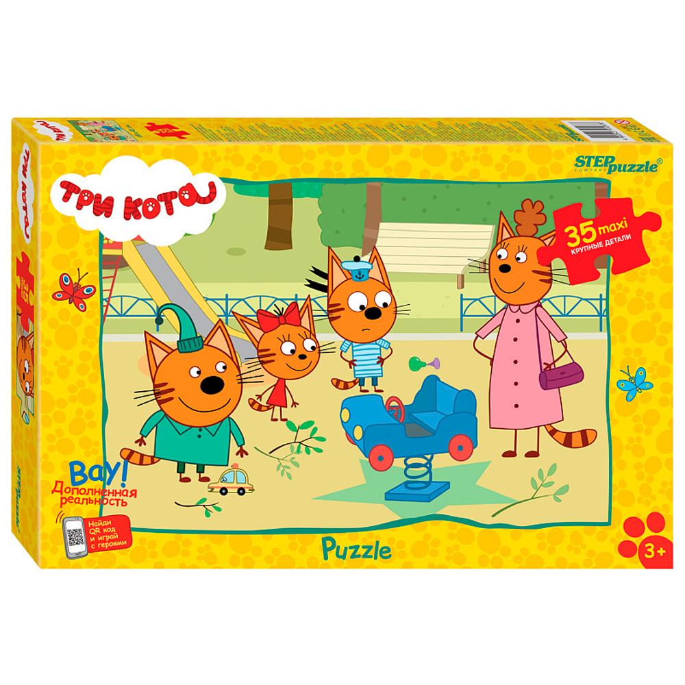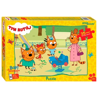 Красочный пазл «Три кота» по мотивам одноименного мультфильма привлечёт внимание малышей. Малыши с большим интересом соберут веселую картинку с любимыми персонажами.