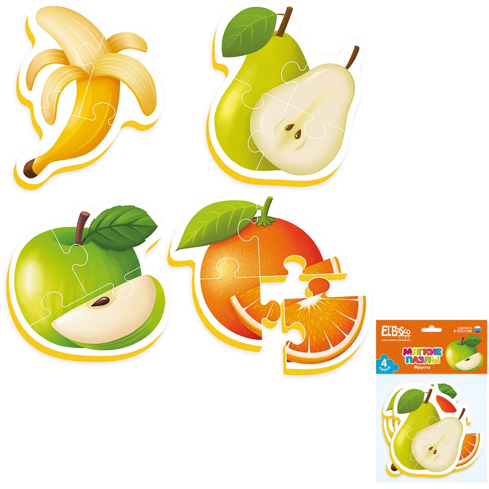 Малыши в процессе игры соберут 4 картинки фруктов и познакомятся с их названиями.