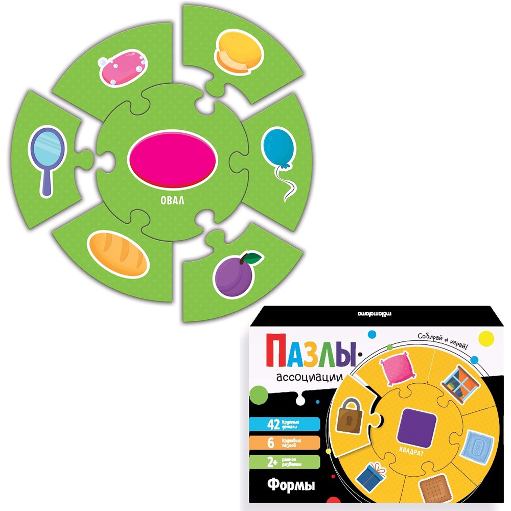 Круговые пазлы-ассоциации «Формы» — это простой и интересный способ всестороннего развития малыша.