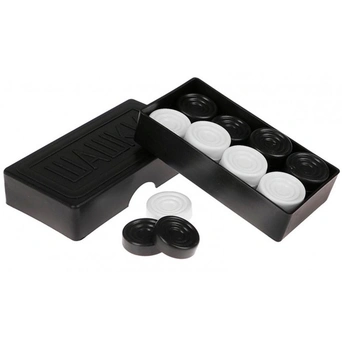 Комплектация: 24 шашки (12 черных и 12 белых). Игровое поле в комплектацию не входит.Материал: пластик