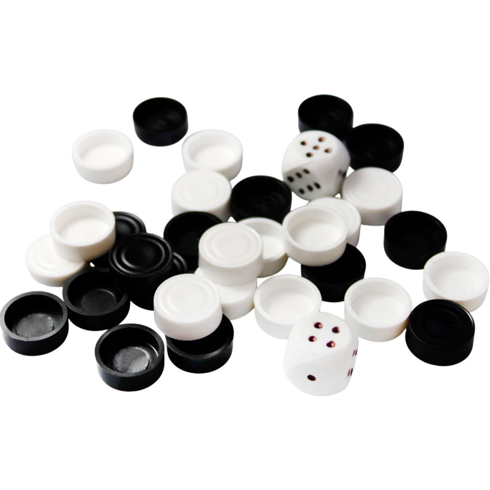 Комплектация: 24 шашки (12 черных и 12 белых), игровые кубики, игровое поле, правилаМатериал: пластик, картон