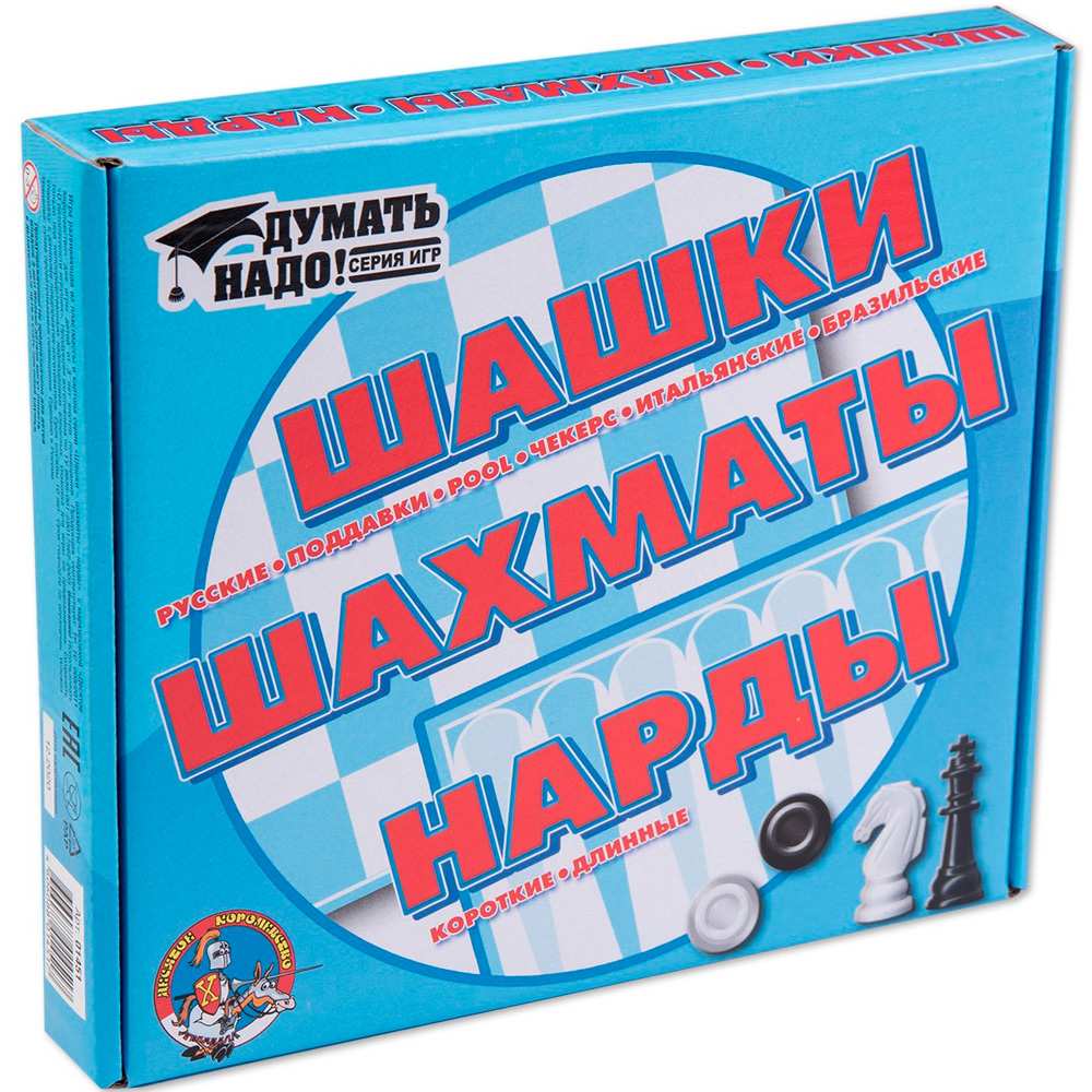 Игровой набор 3-в-1 позволят интересно и с пользой провести досуг. Настольная игра "Шашки, шахматы и нарды" от компании «Десятое Королевство» поможет в развитии у ребенка логического, пространственного и стратегического мышления, интеллекта, уважения к противнику, умению побеждать и терпеть поражение. Все элементы игры сделаны из качественного картона и пластика, что позволит использовать игровой набор долгое время.