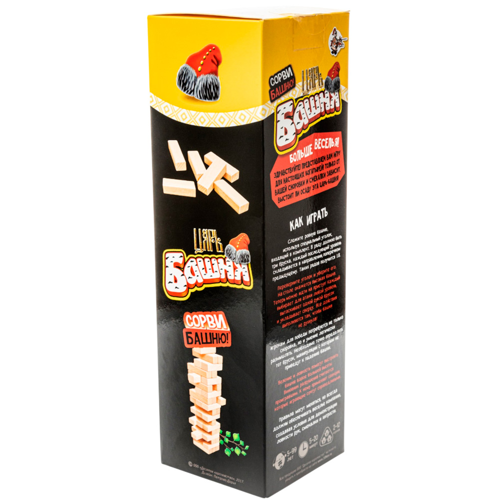 Теперь игроки могут идти на приступ «Царь башни». Каждый игрок выбирает для атаки любой уровень и вытаскивает одной рукой один из брусков! Этот брусок, оказавшийся в руках игрока, укладыва
