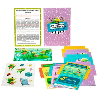 Комплектация: 8 конвертов с заданиями, наклейки, пазл 8 элементов, правила.