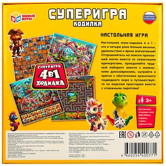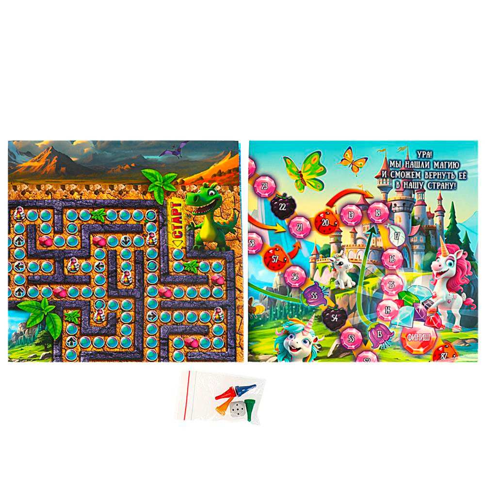В набор вошли 4 классические игры: ходилка, лесенки, лабиринт и бродилка.