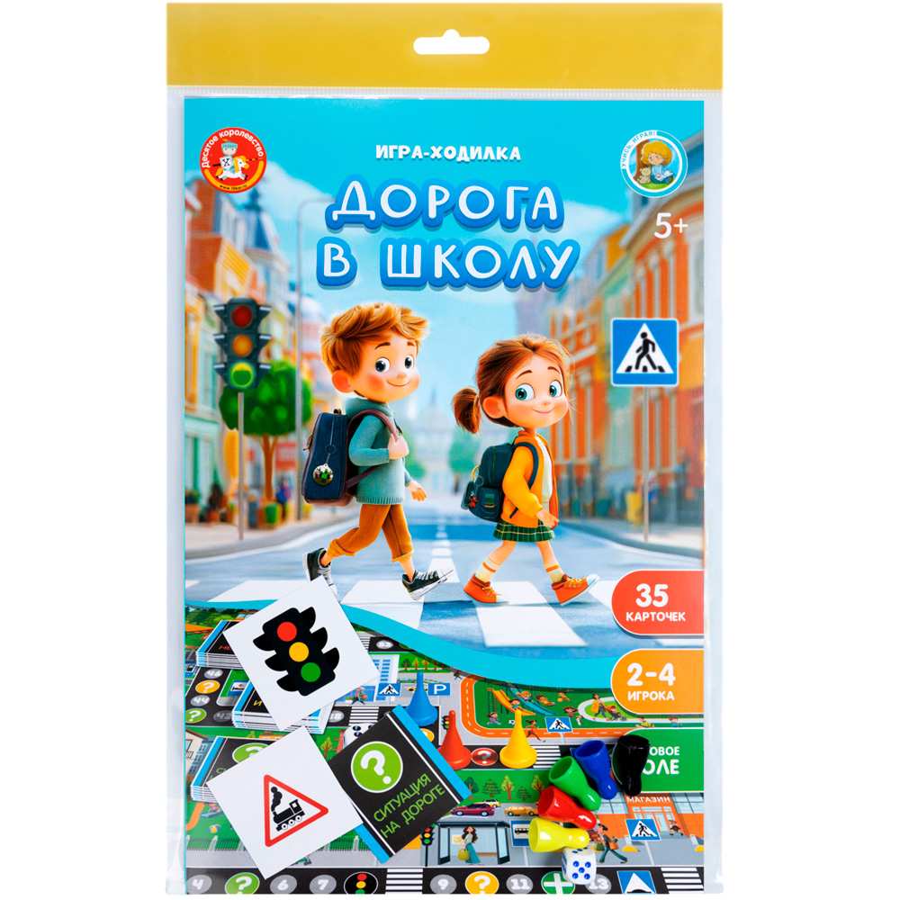 Комплектация: игровое поле - 1 шт., фишка - 6 шт., кубик - 1 шт., карточка - 35 шт., правила игры