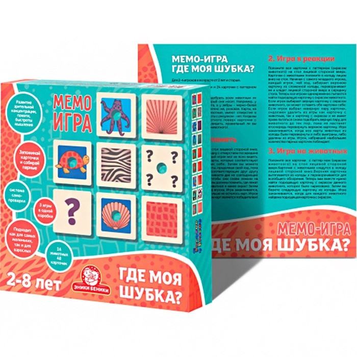 Увлекательная детская настольная мемо игра «Где моя шубка?» обязательно понравится вашему ребенку! Игра на память, игра в реакцию и игра на животных.