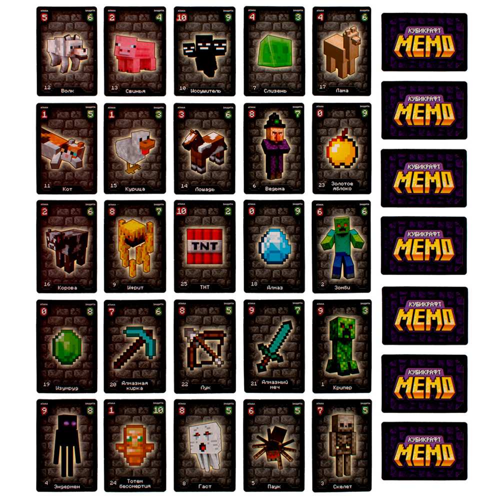 - если картинки совпали, то игрок забирает карточки себе, если нет, то игрокам нужно запомнить, что на них изображено и где они лежат, чтобы использовать это наблюдение в свой ход;