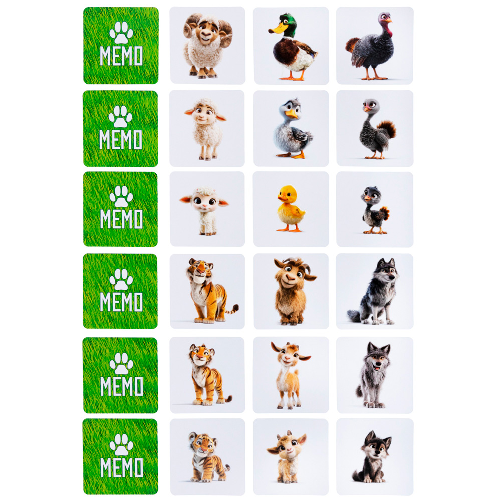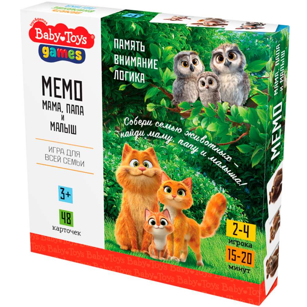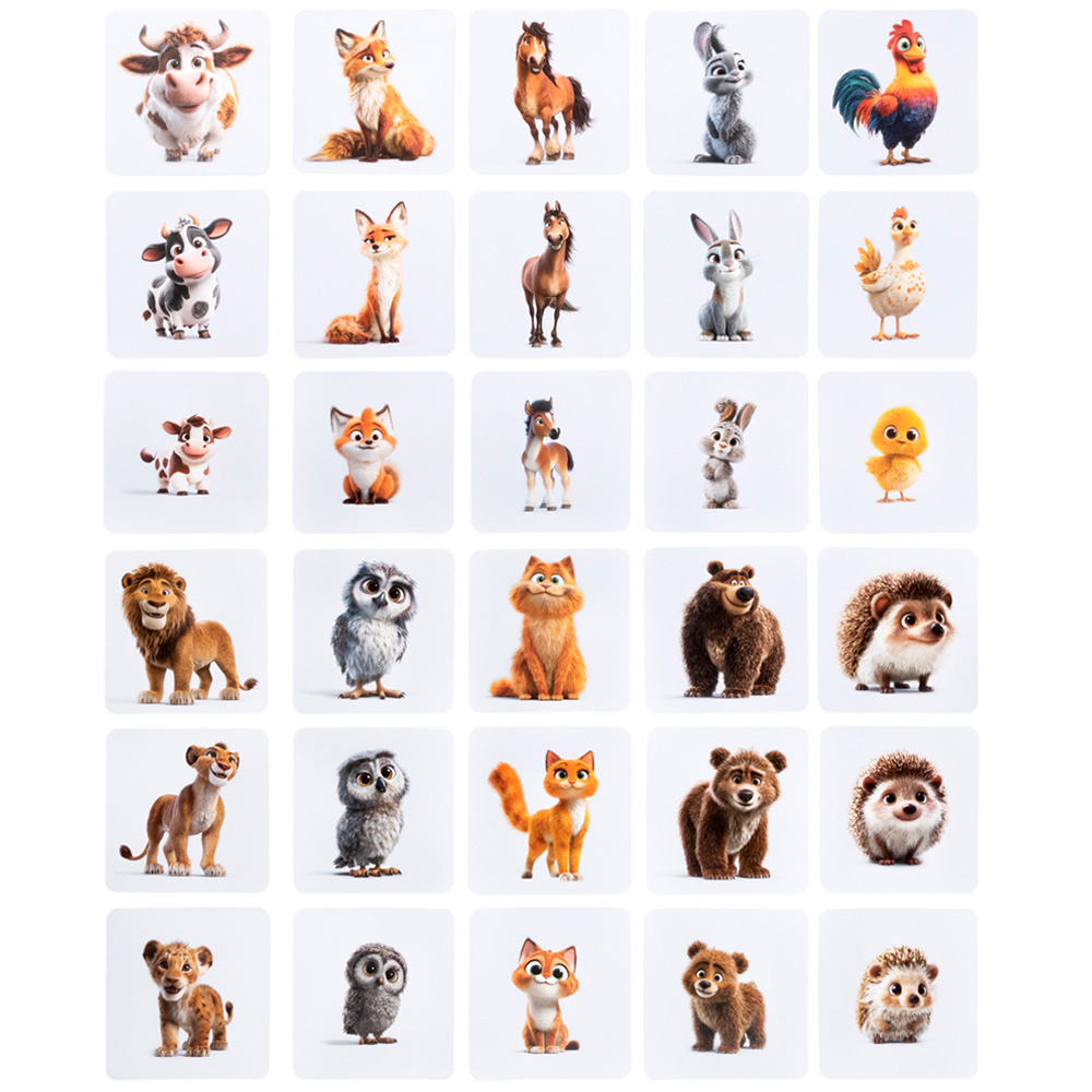 Погрузитесь в красочный мир с настольной игрой МЕМО «Мама, папа и малыш», где обитают очаровательные семейства животных.