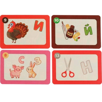 5 вариантов игры в буклете: "Найди пару", "Что пропало?", "Беспорядок", "карточное лото", "Кто больше?"
