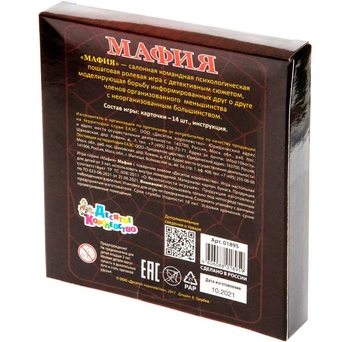 «Мафия» – салонная командная психологическая пошаговая ролевая игра с детективным сюжетом, моделирующая борьбу информированных друг о друге членов организованного меньшинства с неограниченным большинством.