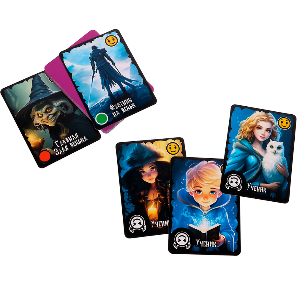 Игра представлена красочно исполненными карточками с изображением 2-х противоборствующих команд: мирных жителей и мафии.